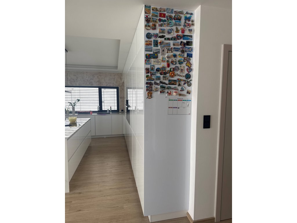 This metal white sheet is made of a flexible rubber-metal foil laminated with a white glossy writable layer of polyethylene terephthalate (PET) on the top side and with a thick self-adhesive layer on the bottom. Therefore, you can stick this metal foil to a wall or surface made of any material. You can use a water-based marker to write on this surface and then erase all the writing more than 100,000 times without damaging the foil surface. Besides, you can attach any magnet from our assortment to the surface of this metal foil.
