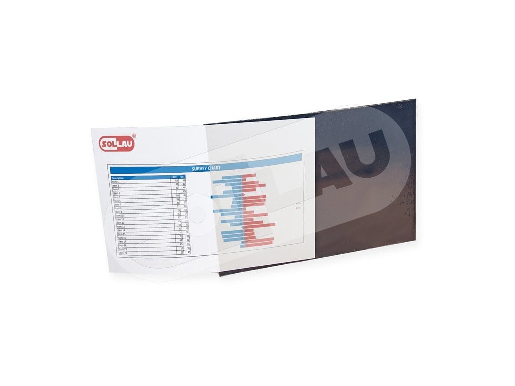 The front part of the classic A4 format magnetic pocket has a colorless transparent PVC foil for easy insertion of presented documents. The entire surface of the pocket back is made of a brown flexible magnetic foil with a thickness of 0.7 mm. Besides, the front side of this magnetic foil is laminated in color. Inserting A4 documents is possible from the shorter pocket side. The magnetic pocket is suitable for the visualization of messages in combination with a "whiteboard" or another metal surface. It can be fixed in both horizontal and vertical positions.