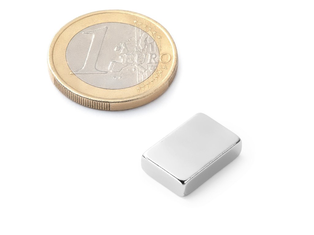 Neodymium NdFeB block magnet 15x10x4 mm, N42, nickel