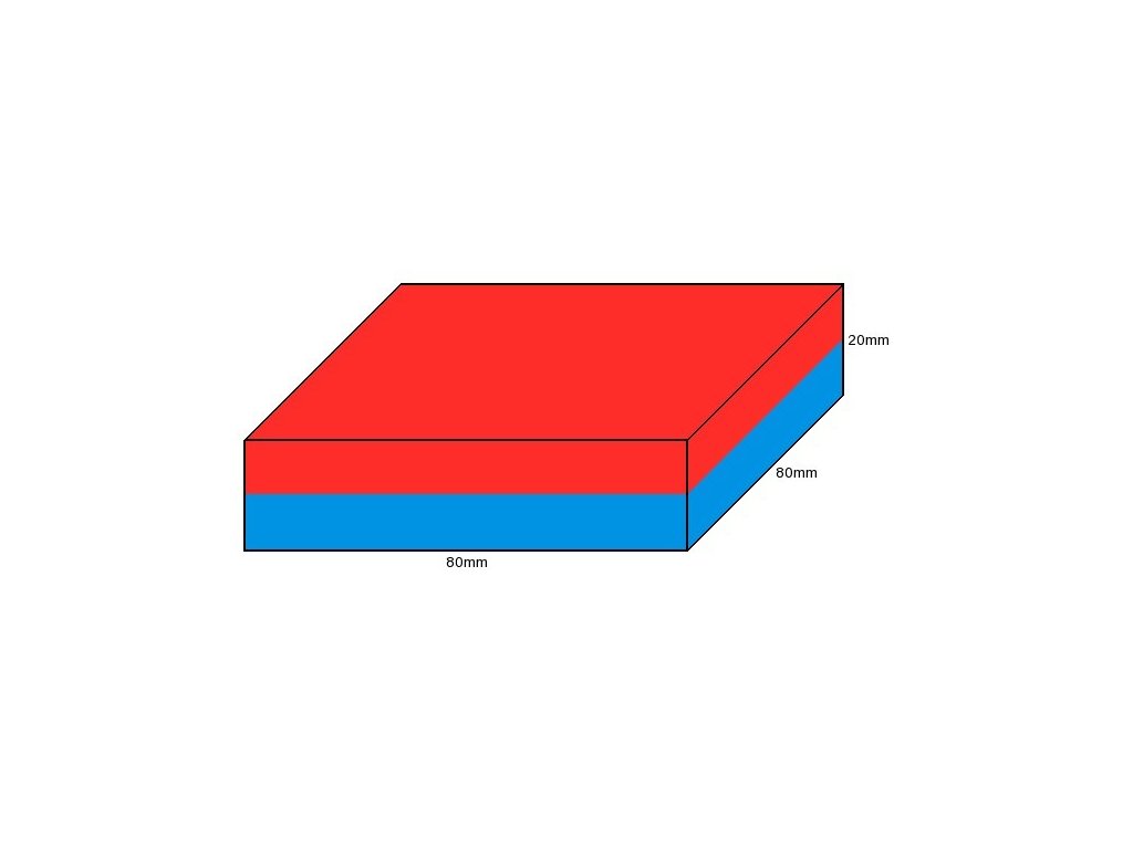 Neodymium NdFeB block magnet 80x80x20 mm, N45, nickel