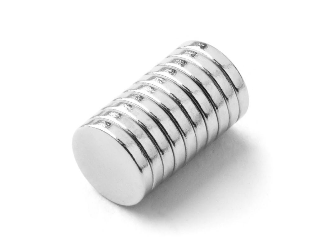 Neodymium NdFeB disc magnet D 6x1 mm, Neodym, N42, nickel