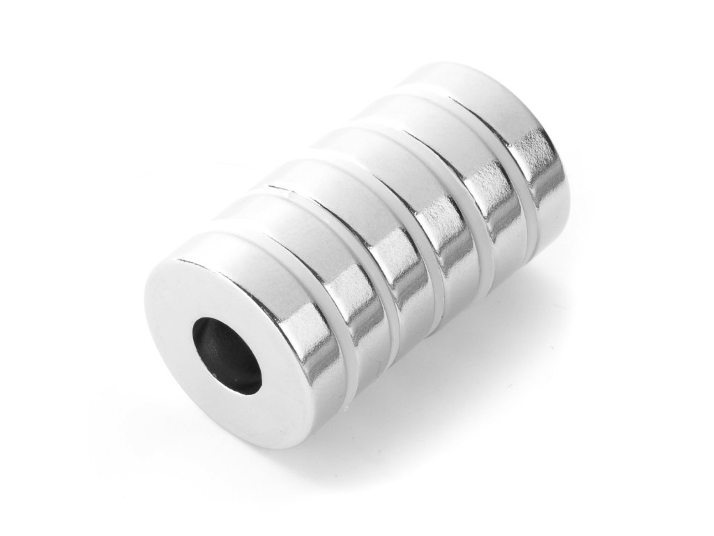 Neodymium NdFeB ring magnet D 20/8 mm, H 5 mm, N38, nickel